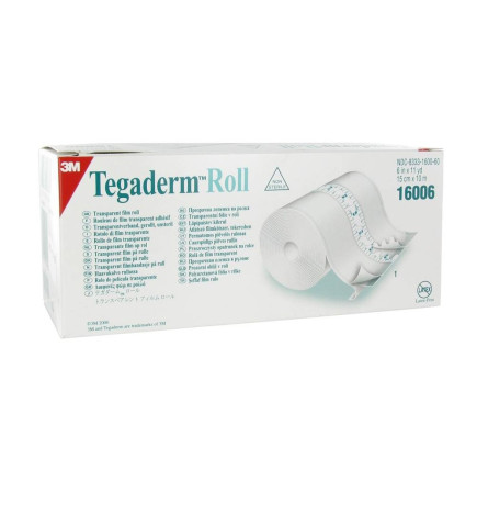 Tegaderm Roll, medicazione non sterile in film trasparente è caratterizzata da: - Supporto in poliuretano sottile, traspirante ma impermeabile ai liquidi e trasparente, che permette quindi di osservare la cute senza necessariamente cambiare la medicazione; - Adesivo in miscela di acrilati, ipoallergenico e privo di lattice; - Fascia centimetrata per facilitare...